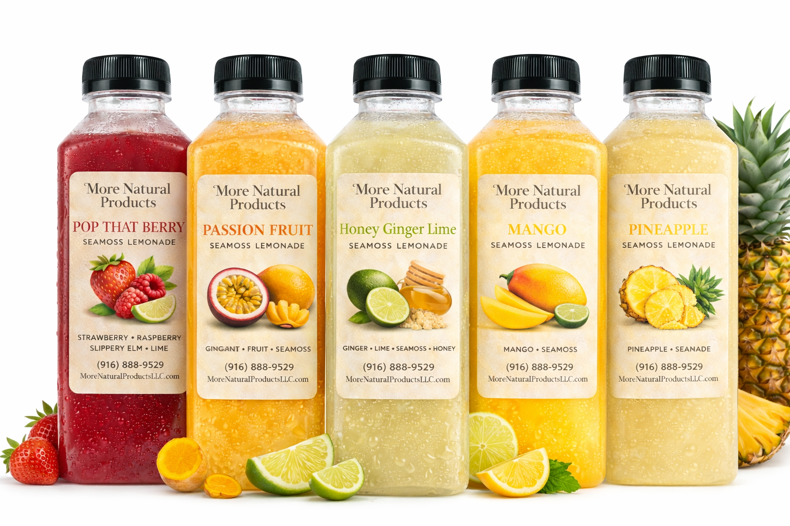 All ingredients, including fruit bases, botanicals, and specialty additions, are clearly listed on each label.